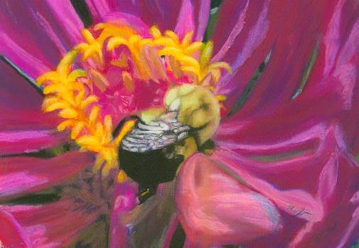 I always struggle with flowers, because my eye just gets lost in the multitudes of petals. But each of the insects gave me an anchor, and with patience and perserverance, I was able to produce some pastel pieces I'm very happy with.