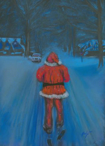 My slightly dark sense of humor took over on this one. The original reference is simply a picture of my husband walking down the street on a snow-bound day, but my imagination took over and I couldn't help but picture Santa once the reindeer have demanded a midnight snack. (I assume all turned out well in the end, with fuel and toys for everyone!)